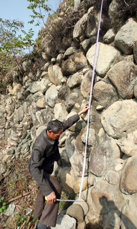 據(jù)介紹,桃園古溪村目前有1500余人,大都姓林,是古堡主人的后裔,“石堡建于明朝中期,有400多年歷史了!74歲的林公開老人告訴記者,400多年前,桃園林氏先祖元佑公從水頭遷來東田桃園古溪,看到這里風(fēng)景優(yōu)美,就決定在這里定居。 “修建石堡的是元佑公的二兒子林管。”林公開老人說,林管別名“經(jīng)山”,明朝時(shí)期沿海倭寇猖獗,廣有資財(cái)?shù)牧止芘麓迩f毀于倭寇之手,就花費(fèi)家產(chǎn),經(jīng)過數(shù)年的時(shí)間終于建成了一棟遠(yuǎn)近聞名的石堡。 石堡建成后不久,就有倭寇入侵東田,當(dāng)?shù)厝迦丝谥挥?00余人,包括鄰村的數(shù)百名百姓全部躲進(jìn)石堡避禍,“里面有糧食,又有水井!辟量車(shù)日,使用火攻不但久攻不下,還因?yàn)楸?nèi)百姓用長(zhǎng)矛弓箭反擊,自己反而死傷了不少,倭寇無奈只好退兵。 66歲的林凱老人告訴記者,石堡不但成功抵御了倭寇的進(jìn)攻,在歷史上還多次防御了土匪,真正起到了保家護(hù)鄉(xiāng)的作用。 考古專家劉志成告訴記者,古堡抗倭的說法應(yīng)該可信度還比較高,明代東田曾出了一個(gè)著名的抗倭英雄歐陽深將軍,曾多次在東田、英都一帶與倭寇血戰(zhàn),而當(dāng)時(shí)整個(gè)泉州乃至東南沿海都是“倭禍”重災(zāi)區(qū)。