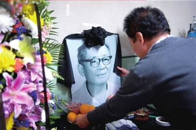 昨天在靈堂前,王秀榮用父親生前最喜歡的口琴給老人吹奏《送情郎》。悠揚的口琴聲響起時,老人的子女頓時哭聲一片,“這節(jié)奏太熟悉了,我覺得我爸沒走”,大女兒王秀英說。(記者于杰)