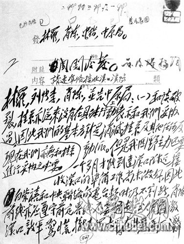 武漢是1949年5月解放的,但從此次披露的電報手稿影印件來看,早在2月12日,毛澤東即為中央軍委起草了給四野司令員林彪、政委羅榮桓等人的電報,命令四野先出兩個軍迫近漢口鉗制白崇禧部,使其不能向東增援以妨礙中野、華野渡江。3月17日又電令四野主力應于4月1日前完成出發(fā)準備。