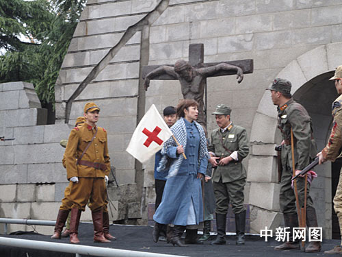 為紀念“南京大屠殺”事件爆發(fā)七十二周年,悼念南京三十萬同胞遇難七十二周年,為了讓廣大人民群眾尤其是青少年勿忘國恥,珍惜和平,為反映發(fā)生在南京的重大歷史事件,今天中午,南京市話劇團在江東門“南京大屠殺遇難同胞紀念館”現(xiàn)場演出舞臺劇《淪陷》。