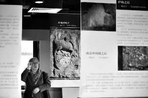 在展出的這些被掠奪走的石頭圖片中,有明代宮廷雕刻麒麟石、“上海市政府辦公廳”唐草紋樣拱門石、長(zhǎng)城石磚、綏遠(yuǎn)清代高官墓石、南京中山陵的石頭、泰山頂上的石頭、南京紫金山上的石頭、蘇州城的太鼓石、旅順港的封鎖舟之石等。(記者王薈)