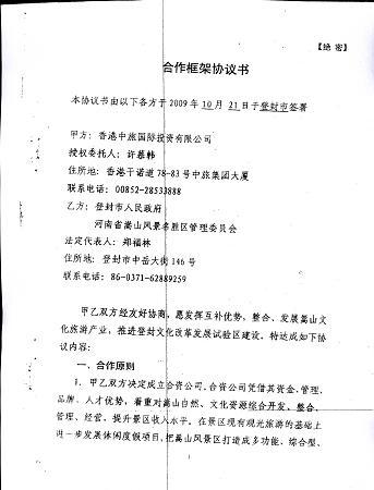 被少林寺方丈釋永信辟謠多次的“少林寺上市”或許并非空穴來風(fēng),不過這一次秘密運(yùn)作2011年“上市”的是登封市政府,連少林寺也被蒙在鼓里。香港中旅集團(tuán)與登封市簽署的《合作框架協(xié)議書》和《登封市政府常務(wù)會議紀(jì)要》顯示,雙方確定斥資一億元成立“港中旅(登封)嵩山少林文化旅游有限公司”,其中港方占51%股本控股,少林寺門票經(jīng)營權(quán)等嵩山少林景區(qū)資產(chǎn)則被登封市作價(jià)4900萬元作為入股的一部分。(12月16日千龍網(wǎng))