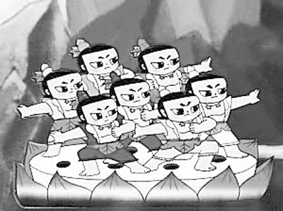 的確,在大多數(shù)人看來,整部《葫蘆兄弟》完全是一個集體作品。即使胡進慶身兼多職參與了《葫蘆兄弟》的導演、編劇和形象設計工作,觀眾也很難發(fā)現(xiàn)這一點。在片頭的字幕中,他用了三個不同的名字,胡進慶、進慶,還有他的筆名“墨犢”,“不然都是我一個人的名字,多難看!