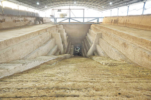 墓地占地面積約800平方米,通過一個39.5米的斜坡墓道,直接通到墓室門口,距離地面15米。如果有一座建筑的話,墓地就位于該建筑的地下五層。