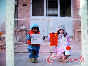 在北京正陽藝術(shù)區(qū)內(nèi)進(jìn)行的這次“暖冬”計劃的首展可謂傳統(tǒng)與另類并行。藝術(shù)家們通過各種各樣的表現(xiàn)手法來表達(dá)自己對于拆遷的態(tài)度。走進(jìn)滿是磚石瓦礫的藝術(shù)區(qū),整個藝術(shù)區(qū)本身似乎就是一件藝術(shù)品,大門內(nèi)是一大片墻體倒塌所形成的廢墟,非常有視覺沖擊力,走進(jìn)藝術(shù)區(qū)內(nèi),在房屋的墻壁上,到處是藝術(shù)家們粉刷的紅紙黑字的大標(biāo)語,要求開發(fā)商“還水還電”,來自798藝術(shù)區(qū)的藝術(shù)家黃銳在寒風(fēng)中專心致志地在藝術(shù)區(qū)內(nèi)的地板上勾畫自己的作品道具——一個畫在磚頭地板上的陰陽八卦圖形。他還撐著一把黑白兩色的傘,在自己勾畫的陰陽八卦里跳來跳去。