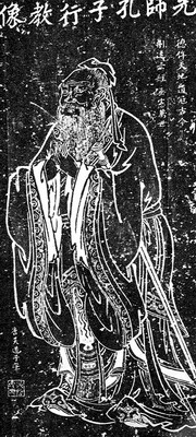 人們通?吹降摹翱鬃有薪滔瘛弊钤绯鲇谔瞥膶m廷畫家吳道子,但他似乎并沒(méi)有認(rèn)真查考資料。另一方面,受《孔叢子》偽書說(shuō)的影響,以后的孔子畫像便以訛傳訛,使孔子畫像、雕像都濃眉長(zhǎng)髯。實(shí)際上,前人也指出孔子沒(méi)有須眉,如明陳繼儒《群碎錄》、清杭世駿《訂訛類編》就說(shuō):孔子無(wú)須,今像多須,誤。