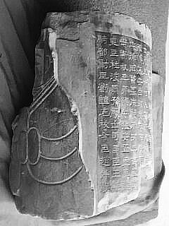 在豐樂鎮(zhèn)村南豐行政村與北豐行政村之間,有一條灌溉渠,渠北約30米的地方,有一堆磚頭,磚堆旁有一圓柱狀的石頭。馮龍海覺得這東西能當(dāng)個(gè)不錯(cuò)的門墩,就吆喝朋友,把它抬到了車上。“回來一看,嘿,還有字有畫的!瘪T龍海說,“我不識(shí)字,就叫來陳東元(陳黎明),讓他看了看!