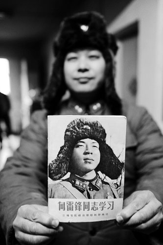 43歲的王鋒是雙鶴醫(yī)藥公司的一名職員。1993年,當(dāng)時(shí)還在蘭州軍區(qū)空軍部隊(duì)服役時(shí),他就開(kāi)始收藏與雷鋒有關(guān)的物品。