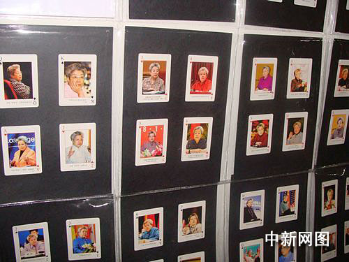 徐州撲克大王姚煥新從收藏的撲克牌中,精心挑選50余副關(guān)于女性題材的特色撲克牌并制作成40余塊展板。在巡展現(xiàn)場(chǎng),記者看到,展板里有以古代女性為主題的《歷代百美圖典》、《中國(guó)歷代才女》,也有現(xiàn)代流行的青春偶像《S.H.E》、《臺(tái)灣第一美女林志玲寫真》;有中國(guó)的《巾幗英!、《宋氏三姐妹》,也有外國(guó)的《鐵娘子》、《折翅的鐵蝴蝶》;有《二戰(zhàn)魅力女郎》,也有現(xiàn)代《中國(guó)女兵》。