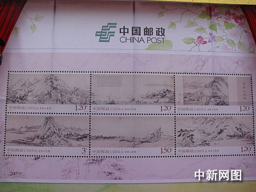 中新網(wǎng)常熟3月20日電 (記者 唐娟)20日上午,以《富春山居圖》整幅畫卷為藍(lán)本的特種郵票首發(fā)儀式首先在黃公望的家鄉(xiāng)江蘇常熟舉行。黃公望公元1269年出生于江蘇常熟,死后亦安葬于此。在常熟石梅廣場舉行舉行的揭幕儀式上,郵票設(shè)計(jì)師郝旭東表示,自己能設(shè)計(jì)郵票很榮幸,希望能通過郵票傳承中國文化,并促進(jìn)兩岸的文化交流。他下午還將趕赴在浙江出席豐相關(guān)的慶;顒(dòng),據(jù)了解,今日下午,在浙江舉行的首發(fā)儀式上,蔡友等3位臺(tái)灣藝術(shù)大學(xué)的知名畫家以及包括浙江畫院院長孫永在內(nèi)的6位大陸知名畫家,將共同揮毫潑墨,在15米的長卷上重新繪制《富春山居圖》。