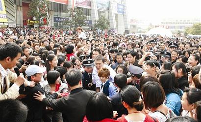 下午2時(shí),郭敬明出現(xiàn)在廣場(chǎng)簽售臺(tái),此時(shí)廣場(chǎng)上已經(jīng)聚集數(shù)千人,人潮開始向前涌。簽了20本書之后,臺(tái)下已近失控,“第一排的讀者已被后面的人擠得貼在臺(tái)子邊沿,人潮搖晃,隨時(shí)都可能發(fā)生踩踏,我感到臺(tái)子都可能擠垮。”長(zhǎng)江文藝出版社隨行人員趙萌,這樣描述他在臺(tái)上所見的情形。2時(shí)10分左右,警方趕到,因安全原因強(qiáng)制取消了整個(gè)簽售,郭敬明一行也被護(hù)送離場(chǎng)。