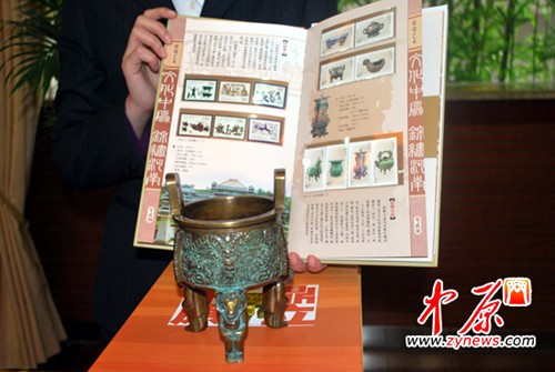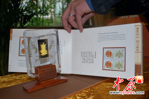 本次活動還現(xiàn)場展示了由中國郵政集團(tuán)公司批準(zhǔn)發(fā)行的《河之南》郵票珍藏冊,《國寶郵情》雙連壺。內(nèi)容涵蓋建國珍郵、中原“國寶”、貴金屬等多個方面。該系列郵票濃縮了中原文化的博大精深,彰顯中原文化在中國文明史上的核心地位。這也是鄭州市郵政局連續(xù)五年為拜祖大典奉獻(xiàn)的文化盛宴。