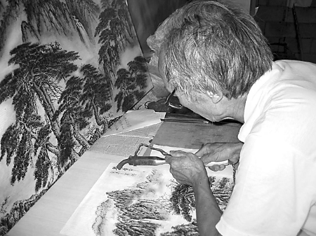 “看著簡單,烙起來難!蹦详柺欣赢嫃S廠長李哲說,烙畫亦稱烙花、燙畫、火筆畫,是以溫度在300攝氏度至800攝氏度的烙鐵代筆,利用炭化原理,不施任何顏料,在竹木、宣紙、絲絹等材料上取其相應(yīng)溫度進(jìn)行勾、擦、點(diǎn)、烘,巧妙自然地把繪畫藝術(shù)的表現(xiàn)技法與烙畫藝術(shù)融為一體,形成自己獨(dú)特的藝術(shù)風(fēng)格。用這種方法創(chuàng)作出的書畫作品為茶褐色,古樸典雅,精美絕倫。
