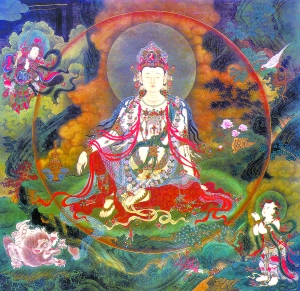在題材上,法海寺壁畫(huà)突出體現(xiàn)了我國(guó)古代繪畫(huà)繼承傳統(tǒng)與時(shí)代創(chuàng)新的藝術(shù)特色。如佛教繪畫(huà)二十諸天《帝釋梵天圖》,是在唐代形成的一種佛教題材模式。法海寺壁畫(huà)中所繪制的二十諸天模式,完全保留了原來(lái)的密宗體系,具有典型的唐代傳統(tǒng),但是在繪法上,又具有明顯的時(shí)代風(fēng)格,創(chuàng)造和表現(xiàn)了明代人物的氣質(zhì)與內(nèi)涵,使人物與動(dòng)物塑造突破了僵硬的傳統(tǒng)表現(xiàn)模式。