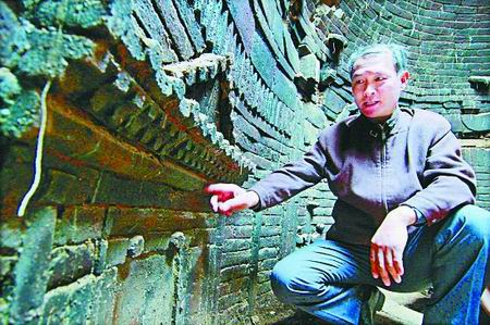 該座宋墓位于南水北調(diào)焦作段普濟(jì)路一處工地上。記者昨日到達(dá)現(xiàn)場時(shí),南水北調(diào)焦作段施工人員正在幫助文物工作人員保護(hù)發(fā)掘現(xiàn)場。據(jù)焦作市文物工作隊(duì)古建專家趙德才介紹,圓形宋墓在焦作市所發(fā)掘的宋墓中比較罕見,這座宋墓上所雕刻的建筑結(jié)構(gòu)清晰可見,對研究宋代建筑有一定價(jià)值。