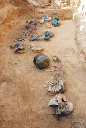 3月15日至5月18日,在省文物考古隊(duì)領(lǐng)隊(duì)楊帆研究員的帶領(lǐng)下,工作人員在西老硐坡發(fā)掘了15座漢墓,挖出了400余件(套)文物。“這是一個(gè)巨大的漢墓群,總面積2萬(wàn)平方米,面積之大實(shí)屬罕見(jiàn)!睏罘f(shuō),這個(gè)漢墓群發(fā)現(xiàn)比較早,今年已是第四次發(fā)掘。因?yàn)橛昙炯磳?lái)臨,考慮到安全因素,野外發(fā)掘?qū)⒁Y(jié)束,現(xiàn)在專家將在室內(nèi)對(duì)文物進(jìn)行修復(fù)。剩下的8000多平方米,將在國(guó)慶節(jié)以后再次發(fā)掘。