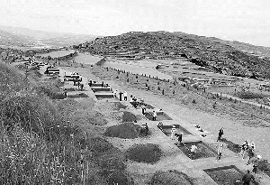 禮縣大堡子山遺址位于禮縣縣城以東13公里處的西漢水北岸,是我省早期秦文化考古與研究的重要組成部分。該墓地的發(fā)掘以及帶有“秦公”銘文青銅器的認定,破解了秦公陵園的千古之謎?脊艑<艺J為,大堡子山古墓的墓葬形制和地理特征說明,甘肅禮縣一帶就是秦始皇的“老家”。
