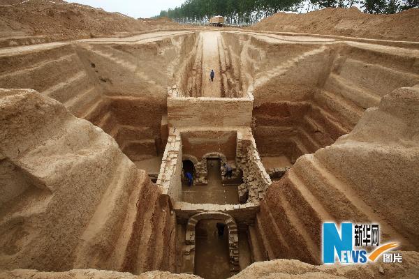 記者在現(xiàn)場看到,由于夏季天氣炎熱,墓葬部分土層出現(xiàn)開裂現(xiàn)象。史家珍說,目前,洛陽已經(jīng)邀請了相關(guān)領(lǐng)域的專家,就如何保護曹休墓加緊制訂方案,并且正在和公路部門就如何架橋能更好地保護曹休墓進行溝通。