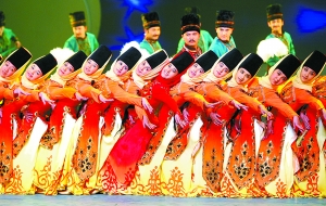 《萬(wàn)方樂(lè)奏》晚會(huì)以和田維吾爾族歌舞為主,由“序幕”、“有于闐”、“在綠洲”、“頌今朝”和“尾聲”5大板塊共14個(gè)節(jié)目組成。其中,萊帕爾歌舞《黨中央的政策亞克西》曾登臺(tái)今年央視春晚,備受觀眾歡迎。此外男子集體舞《大漠鼓舞》里,小伙子們手持面鼓擊鼓吟唱、頗具遠(yuǎn)古遺風(fēng)。女子集體舞《玉鐲舞》中,舞者佩戴玉鐲,婀娜起舞,清脆作響,猶如天女下凡。而融入了西域健舞、軟舞等舞蹈元素的《于闐樂(lè)舞》也再現(xiàn)了唐代宮廷歌舞的精華,表現(xiàn)了絲綢之路多元而厚重的文化。還有男女集體歌舞《豐收麥西來(lái)甫》融入了和田賽乃姆(維吾爾族舞蹈的一種)的藝術(shù)特點(diǎn),完美詮釋了綠洲喜慶、歡騰、和諧幸福的生活場(chǎng)景。整臺(tái)演出匯集了民間說(shuō)唱、民族歌曲、民間舞蹈、民族器樂(lè)等多種藝術(shù)樣式,展示了充滿(mǎn)魅力的和田人文風(fēng)情。 (記者 李洋)