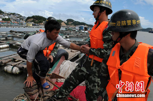 隨著第7號臺風“圓規(guī)”逼近,溫州沿海海面已刮起8~10級大風。8月31日,浙江溫州邊防支隊啟動防臺風應急預案,及時通知海上作業(yè)船舶進港避風,積極幫助漁民加固漁排、轉(zhuǎn)移物資,提前做好各項防臺準備工作。