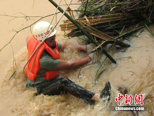 上午10時(shí)許,陽江市政府李日芳副市長召集市三防辦、消防、水利、武警等部門與駐軍奔赴雙捷大壩排險(xiǎn),并迅速成立應(yīng)急指揮部,組成專家組、現(xiàn)場排險(xiǎn)組、后勤保障組,消防部隊(duì)是排險(xiǎn)組的主力軍。
