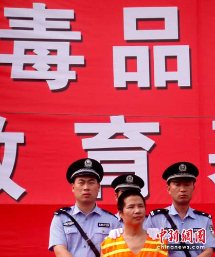 當日下午3時許,公判大會正式開始,首先泰州市海陵區(qū)法院對被告人曹冬華、楊助華、蔣華、周翠華、馬潔、王龍傳以販賣毒品罪進行了宣判,判令6名被告人3年至15年不等刑期;隨后,泰州市中級人民法院對陸申勇、孫海龍、朱錫琴、周國偉以販賣、運輸毒品罪進行了宣判,判令4名被告人11年至死刑的刑期。泰州市常委、政法委書記高紀明、泰州市副市長、公安局局長戴勝利以及泰州市政法系統(tǒng)及衛(wèi)生局、教育局、院校等2000余人參加了公判大會。