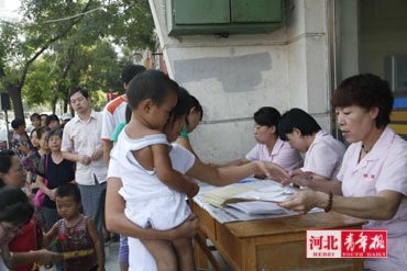 昨日7時(shí)許,家住石市新石小區(qū)的孟先生就帶著孩子來(lái)到橋西區(qū)婦幼保健站,不料前面已排起長(zhǎng)隊(duì),身后還陸續(xù)有家長(zhǎng)帶著孩子趕來(lái)。