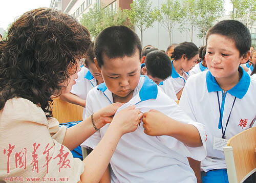 今天(5日),青海省玉樹縣12歲的藏族學(xué)生更尕求占,在天津開始了自己的初中生活。接收她的天津市東麗區(qū)耀華濱海學(xué)校為共計(jì)563名玉樹學(xué)生舉行了開學(xué)典禮,他們當(dāng)中絕大多數(shù)是藏族學(xué)生。5個(gè)月前,他們的學(xué)業(yè)和生活被突如其來的地震打斷。