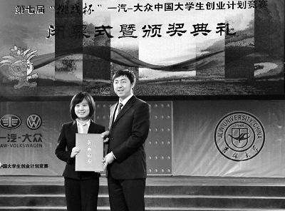 日前,有"大學(xué)生科技奧林匹克大賽"之稱的"挑戰(zhàn)杯"中國(guó)大學(xué)生創(chuàng)業(yè)計(jì)劃競(jìng)賽終審決賽在吉林大學(xué)落下帷幕,山東經(jīng)濟(jì)學(xué)院的《山東潤(rùn)禾科技有限責(zé)任公司》創(chuàng)業(yè)團(tuán)隊(duì)獲得最高獎(jiǎng)-金獎(jiǎng),而這個(gè)創(chuàng)業(yè)團(tuán)隊(duì)的隊(duì)長(zhǎng)就是該校大四女生-楊婷。令人驚奇的是,這個(gè)女生是學(xué)德語(yǔ)的,而她率隊(duì)獲獎(jiǎng)的項(xiàng)目竟然是研究農(nóng)用化肥的!
