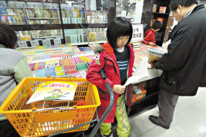 據(jù)新華書(shū)店負(fù)責(zé)人介紹,連日來(lái),書(shū)店無(wú)論是客流量還是購(gòu)書(shū)量都有明顯的增加!靶抡n標(biāo)系列的閱讀叢書(shū)、字帖類(lèi)的書(shū)籍最受歡迎!痹跁(shū)城內(nèi),記者碰到了一位尋找字帖的小女孩。原來(lái)學(xué)校要求學(xué)生寒假練習(xí)寫(xiě)字,指定了某本字帖作為練習(xí)用書(shū),所以造成該書(shū)的暫時(shí)脫銷(xiāo)。