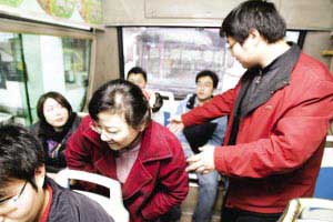 昨天(6日,下同)是第45個(gè)“學(xué)雷鋒日”,當(dāng)天中午,5名大學(xué)生為了“學(xué)雷鋒”給老人讓座,專門到漢渝路464路公交車起點(diǎn)站上車,每人“占領(lǐng)”一個(gè)座位,然后急切地等待著老人或孕婦上車。