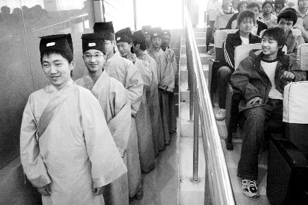 啟動(dòng)儀式上,10個(gè)身穿漢服、頭戴漢帽的男生和10個(gè)身穿粉色漢服的女生一起,演繹了傳統(tǒng)禮儀,包括鞠躬、問好等。據(jù)團(tuán)市委書記高京燕介紹,活動(dòng)將持續(xù)三個(gè)月,由國學(xué)、傳統(tǒng)禮儀等老師組成的講師團(tuán),將于4月份在中學(xué)、大學(xué)開15場講座,教學(xué)生學(xué)習(xí)傳統(tǒng)禮儀、現(xiàn)代禮儀等文化。 (記者 丁亞菲)