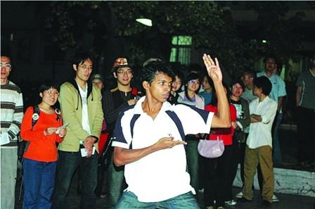 瑞士留學生“飄零”的一套“詠春拳”博得滿場喝彩,他用不太流利的漢語自我介紹:“我來中國已經(jīng)八個月,我從小就很喜歡中國武術(shù),這套詠春拳是我到廣東佛山時向當?shù)厝藢W習的”;來自斯里蘭卡的米奇也不甘示弱,拿著中國的雙節(jié)棍“哼哼哈哈”的舞了起來。十余名留學生還跟著幾名中國學生練起了太極拳,一邊練拳一邊學說漢語……“漢語角”負責人白彥介紹:“許多外國朋友雖然學了中文,但在生活中依然存在著許多不便,在外面就餐、游玩時經(jīng)常會遇到語言障礙。于是我們便仿照‘英語角’的形式舉辦‘漢語角’,既讓外國人練口語,也能讓他們了解中國傳統(tǒng)文化!(記者談海亮 通訊員張聞 林賢宰)
