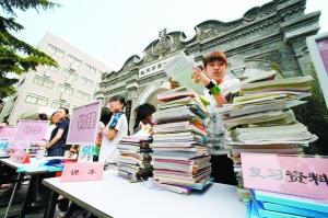 “眼看就要高考了,聽說他們連課本都沒有!薄拔业母呖冀Y(jié)束了,我想我的資料能對他們在高考中考出好成績提供幫助!弊蛉丈衔9時(shí),剛剛結(jié)束高考的北京高三學(xué)生們在二中校門外將自己的復(fù)習(xí)資料捐贈給災(zāi)區(qū),他們還將自己的祝福寫在復(fù)習(xí)資料的扉頁上,向經(jīng)受地震災(zāi)害的同齡人送去鼓勵(lì)。