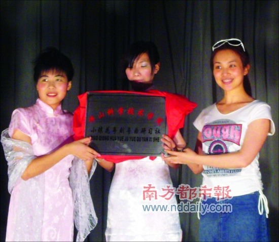 “小瓊花粵劇粵曲研習(xí)社”在佛科院師專禮堂揭牌,佛山市青年粵劇團(tuán)捧場慶祝晚會。團(tuán)長李淑勤說,她一個(gè)多月前就知道社團(tuán)要成立,覺得對于傳播粵劇文化有非常好的影響,所以決定給予全力支持,并派出專業(yè)隊(duì)伍和同學(xué)們交流。