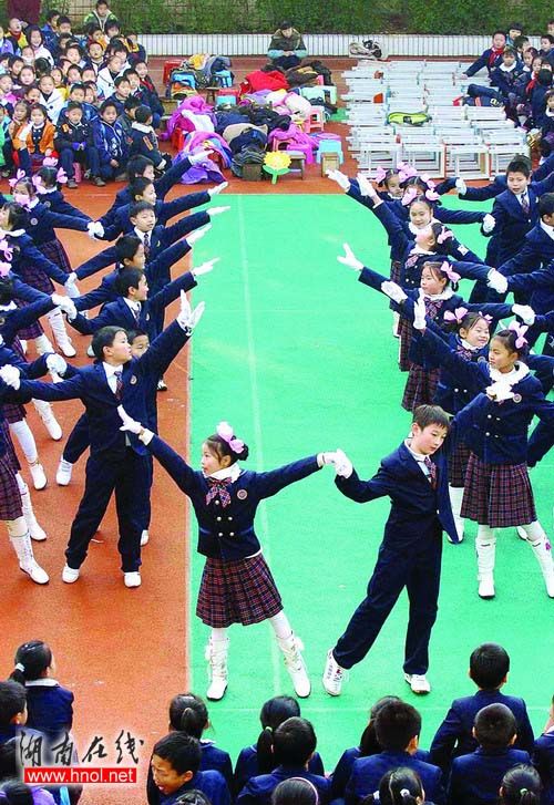 “開始全校學(xué)生學(xué)還是學(xué)了,但要達(dá)到美觀整齊的效果,要花大量的時(shí)間和精力,加上這個(gè)集體舞需要男女同學(xué)相互配合,動(dòng)作比較多,學(xué)好并練熟練的難度比較大,因而到這個(gè)學(xué)期就停了。”長沙市第28中一位班主任老師說。