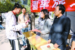 10月23日,北京建筑工程學(xué)院冬季征兵咨詢活動(dòng)如火如荼地進(jìn)行著。學(xué)校武裝部部長(zhǎng)張慶春老師說(shuō),今年參加征兵咨詢活動(dòng)的同學(xué)非常踴躍,人數(shù)超過(guò)了往年。