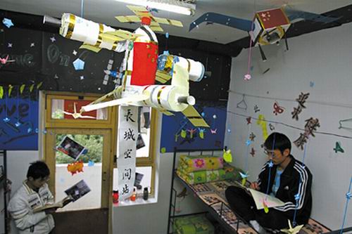 近日,來自西南大學(xué)植物保護學(xué)院的6名大學(xué)生用廢舊的塑料瓶、用過的廢紙片、垃圾箱內(nèi)淘來的百事貼等廢品將寢室裝飾成了太空艙。其效果照片在網(wǎng)上一經(jīng)發(fā)表,立即引來大量點擊,網(wǎng)上熱議其為山寨版“神七艙”。
