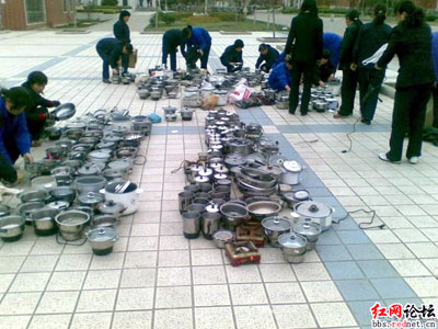 曉云指出,用熱得快燒熱水要比在天寒地凍的天氣里頂著寒風(fēng)去水房排好長(zhǎng)的隊(duì)打水方便的多:“另外學(xué)校的食堂也長(zhǎng)期處于校內(nèi)壟斷狀態(tài),飯菜越來(lái)越難吃,份量越來(lái)越少,而價(jià)錢卻越來(lái)越高,所以我們干脆自己用電飯鍋、電磁爐開(kāi)伙了,改善下生活!