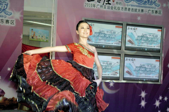 “卡丹路亞運(yùn)天使·廣州2010年亞運(yùn)會(huì)禮儀志愿者選拔大賽”廣東賽區(qū)的首場(chǎng)晉級(jí)賽9月13日下午在廣州展開。廣州分賽區(qū)500多位報(bào)名參賽者中通過初步篩選的前30名選手,經(jīng)過一番現(xiàn)場(chǎng)比拼后,最終有20名晉級(jí)廣東賽區(qū)“百強(qiáng)”。
