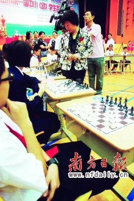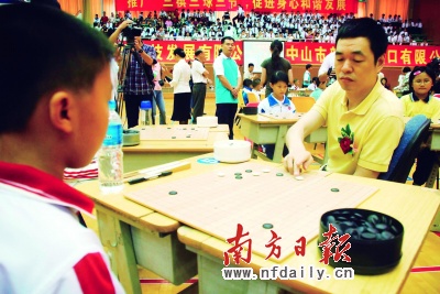 前日,“中國(guó)移動(dòng)杯”中山市首屆中小(幼)學(xué)生智力運(yùn)動(dòng)會(huì)在中山市一中正式拉開帷幕,我國(guó)國(guó)際象棋大師謝軍、圍棋大師馬曉春和中國(guó)象棋大師呂欽來(lái)到現(xiàn)場(chǎng)并與中山小棋手進(jìn)行了車輪表演賽。