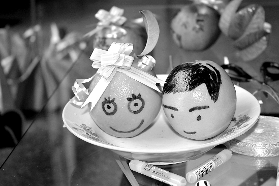 “水果賀卡是種取代傳統(tǒng)紙質(zhì)卡片的新型賀卡,以蘋果、橙子、香蕉等日常水果為材料,用在上面寫字、繪畫、粘貼寫有祝福語的彩色絲帶等方式來裝扮!