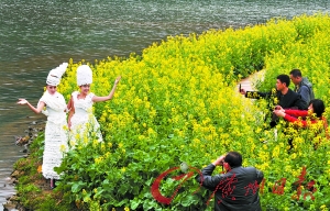 本報(bào)訊(記者海國攝影報(bào)道)昨日,從化石門公園金海節(jié)開幕前,來自西安交大的兩名女大學(xué)生,分別身穿一件全部由白紙制的成環(huán)保衣服,穿梭在花中向游人宣傳環(huán)保觀念。據(jù)該服裝設(shè)計(jì)的作者、環(huán)保主義者朱女士說:創(chuàng)作靈感來自哥本哈根會議。兩件服裝分別花費(fèi)一個(gè)星期,用了90多筒卷紙折疊而成,希望人類保護(hù)自然,愛護(hù)環(huán)境,不然五光十色的地球?qū)⑼噬,變成單一的白色?table border=0 cellspacing=0 cellpadding=0 align=left>