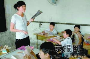 “在這個(gè)很簡陋但整齊的教室里坐著50多個(gè)小學(xué)生,生于1986年的姚老師已經(jīng)在這里任教兩年。她帶兩個(gè)班,同時(shí)是一個(gè)班的班主任。每月工資雖然只有800元左右,每天工作十幾個(gè)小時(shí),但她沒覺得苦!