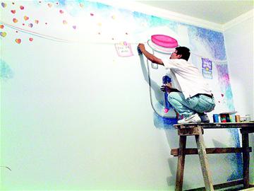 “傳統(tǒng)裝修視覺上平面、乏味,而墻繪卻可以營造出立體感,個(gè)性十足!笔袌(chǎng)調(diào)查后,陳斌決定創(chuàng)辦一個(gè)墻繪工作室,既能發(fā)揮自己的美術(shù)專業(yè)專長,又能實(shí)現(xiàn)創(chuàng)業(yè)夢(mèng)想。同學(xué)武杰一拍即合,兩人果斷籌集了1萬元啟動(dòng)資金,并邀請(qǐng)劉慧等3名女同學(xué)加入進(jìn)來。今年5月17日,5位大學(xué)生的工作室正式成立。
