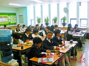 記者參觀了成立于1961年的韓國慶熙小學,這個學校目前共有學生720人,六個年級,每個年級有4個班。據(jù)該學校的副校長介紹,該學校最大的特點是外語教學,記者參觀的當日,正遇到小學三年級的學生英語測試,采用的是老師與學生對話的形式。靈活實用的方法是值得我們國內的學校學習和借鑒的。