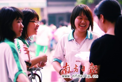 而來得早的學(xué)生們圍在學(xué)校對面的小賣部門前,三五成群地吃著雪糕聊天!安慌鲁詨亩亲佑绊懣荚嚸?”面對記者的提問,佛山四中3名女生笑著說:“不怕!碑敱粏柤熬o不緊張的時候,其中一個戴眼鏡的女生笑著說:“說緊張那是以前的事了,經(jīng)過這么長時間復(fù)習,心態(tài)早就調(diào)整好了!彼齻兊募议L都沒來也不準備來送考!拔也蛔屗麄儊,來不來沒什么分別,他們還要上班!奔易⌒l(wèi)國路的小劉對考后對答案也不忌諱,“當然是最好不要對了,不過對不對沒什么關(guān)系。”