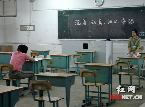 湘潭一中考點負責(zé)人介紹,劉華珍坐在了備用考室最中央的一個位置上,兩名監(jiān)考老師中有一名校醫(yī),另外醫(yī)院救護車也守候在考場外,幾名醫(yī)生也在緊張待命當(dāng)中,應(yīng)對可能的意外情況。