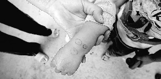 在幼兒園門口,聽說記者來采訪,不斷有家長帶著孩子圍攏過來。小謙的頭頂上被畫了幾個(gè)圈,他媽媽指著這些圈點(diǎn)告訴記者:“這個(gè)老師太狠心了,連頭上都亂打針!毙≈t的媽媽對記者說,他們是今年9月才把孩子送去這個(gè)幼兒園的,之前兒子一直好好的,但近段時(shí)間以來,只要他們每次送孩子上學(xué),娃娃都會(huì)哭著喊著不去幼兒園,而且一提到老師就哭,直到有一天,她問小謙為什么不愿意去上學(xué),兒子才說:“去學(xué)校老師就打針,我不去上學(xué)!