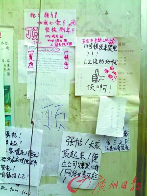 上海第二工業(yè)大學(xué)河?xùn)|校區(qū)的一些學(xué)生,因不滿校園網(wǎng)速極慢,連上QQ都困難,紛紛在寢室門口張貼出一份份類似網(wǎng)上灌水的“跟帖”,集體聲討學(xué)校網(wǎng)絡(luò)公司(如圖)。有同學(xué)把這種頂帖的盛況拍下來放到網(wǎng)上,引來不少網(wǎng)友的關(guān)注,有網(wǎng)友稱平時大家在網(wǎng)上發(fā)牢騷,學(xué)校根本不知道,但通過這種現(xiàn)實跟帖的方式,學(xué)校就不得不關(guān)注。上海第二工業(yè)大學(xué)相關(guān)負責(zé)人回應(yīng)稱,目前事情已經(jīng)解決。